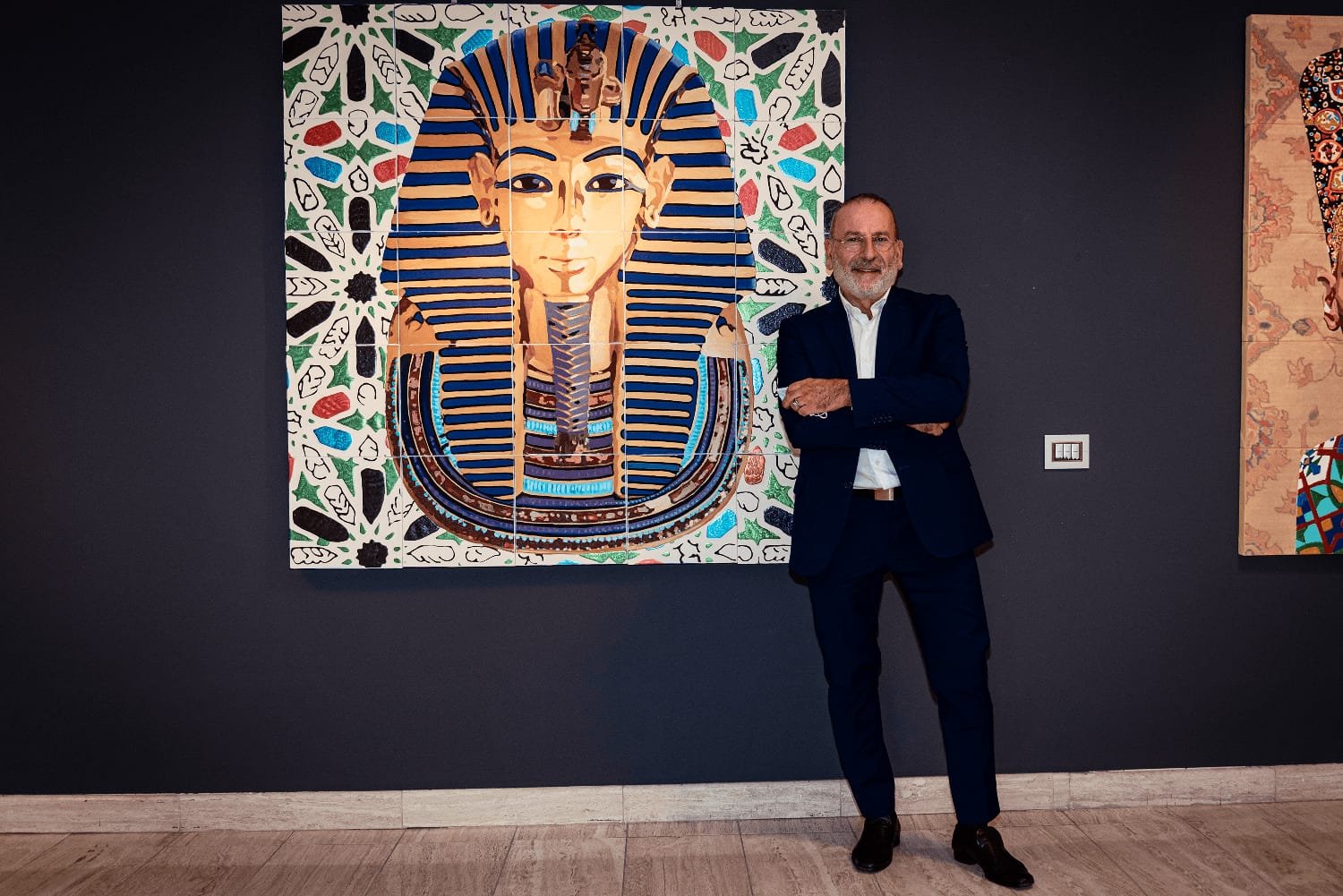 Nelle opere esposte "Sotto il cielo di Tutankhamon" il collegamento tra oriente e occidente può avvicinarci alla comprensione dell'arte egizia, un'arte che coniuga naturalismo e astrazione, un mondo di immagini dove ciò che veniva raffigurato non era il visibile ma l'esistente, immagini vive, eterne e quindi contemporanee.